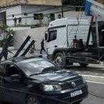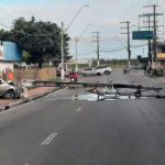 VÍDEO: Caçamba arrasta fios e derruba poste sobre carro em avenida de Manaus