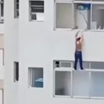 VÍDEO: Mulher escorrega e fica pendurada em prédio ao tentar limpar janela