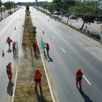 Agentes de limpeza da Secretaria de Limpeza Urbana (Semsulp) realizaram a varrição e raspagem do meio-fio e calçada ao longo dos 3.585 metros de extensão da ponte
