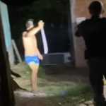 Vestindo apenas cueca, homem ameaça polícia com um terçado e acaba preso; VÍDEO