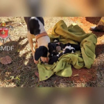 Mindu foi encontrado embaixo de uma árvore, que desabou em um temporal em dezembro de 2021. Após tratamento, o cão está vacinado, castrado e vermifugado esperando uma nova família