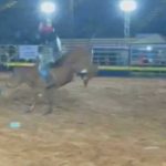 Vídeo mostra momento em que locutor de rodeio leva chifrada de touro; veja