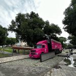 Artista Raiz Campos colore mural do caminhão Serasa, em Manaus