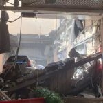 Imagens que circulam nas redes sociais mostraram o início do desabamento da laje sobre a praça de alimentação