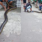 Sucuri é flagrada passeando em rua do bairro Riacho Doce, em Manaus