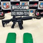 PMAM prende homem com fuzil e drogas após ameaças a moradores em condomínio no bairro Tarumã, zona oeste de Manaus.