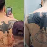 Na foto, divulgada nas redes sociais, é possível ver o homem com a tatuagem de uma águia, lembrada como um dos símbolos nazistas