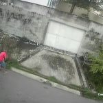 Suspeito aparece desferindo os golpes contra a vítima, que cai no chão. Moradores correm para tentar intervir e conter o agressor.