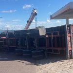 Motorista fica ferido após caminhão tombar na Avenida Max Teixeira