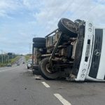 VÍDEO: Ônibus perde controle e tomba no Porto da Ceasa; passageiros não estavam a bordo