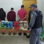 Com os suspeitos foram aprendidos 63 tabletes de substâncias, supostamente, pasta base, cocaína e maconha.