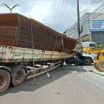 Carreta quase tomba na Constantino Nery com carga de vergalhões