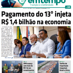 O jornal impresso Em Tempo do dia 12/12/2025 destaca: Pagamento do 13º injeta R$ 1,4 bilhão na economia