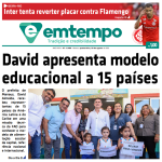 O jornal impresso Em Tempo do dia 20/08/2025 destaca: David apresenta modelo educacional a 15 países