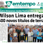 O jornal impresso Em Tempo do dia 28/08/2025 destaca: Wilson Lima entrega 600 novos títulos de terra