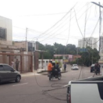 O carro se chocou contra um poste e o impacto deixou cabos de energia elétrica caídos na avenida